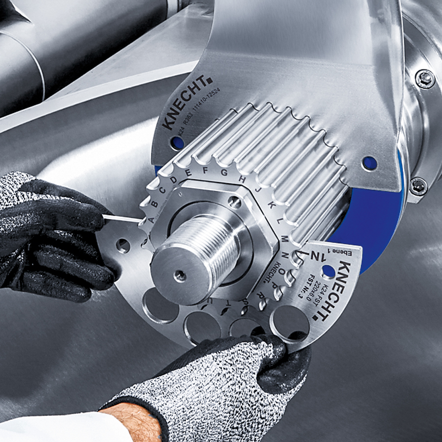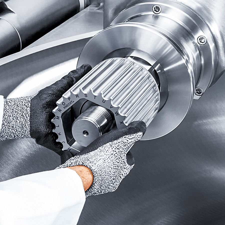 Вместо дорогостоящих стопорных колец обычных ножевых систем, в системе куттерных ножей KNECHT K 24 используется комбинация из зубчатой профильной гильзы и простых промежуточных колец. Основными преимуществами системы куттерных ножей K 24 являются исключительно простое управление и высокая эксплуатационная надёжность. Поэтому нам удалось полностью отказаться от таких подвижных деталей, как пальцы или болты.